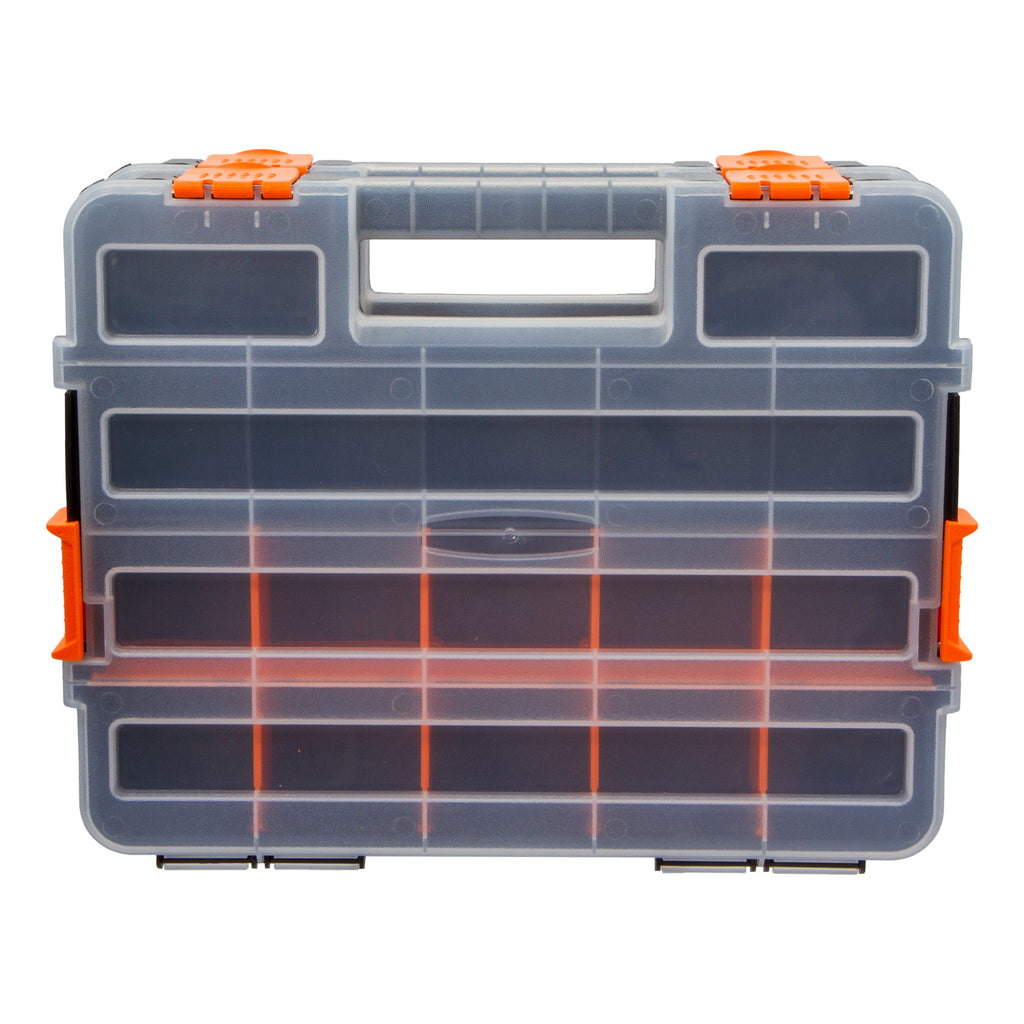 2 Piece 335 x 260mm Stackable Organiser featuring 17 customisable compartments designed for flexible storage solutions. Each unit includes 9 removable partitions, allowing you to configure the internal layout to suit your specific needs—whether organising fasteners, components, or small tools. The robust locking mechanism enables multiple organisers to be securely stacked and connected, creating a modular storage system that grows with your requirements. With external dimensions of 335 x 260 x 67mm per unit, these organisers offer substantial capacity whilst maintaining a compact footprint. The durable construction ensures reliable performance in workshop or garage environments, making this a practical investment for anyone seeking efficient, scalable organisation.