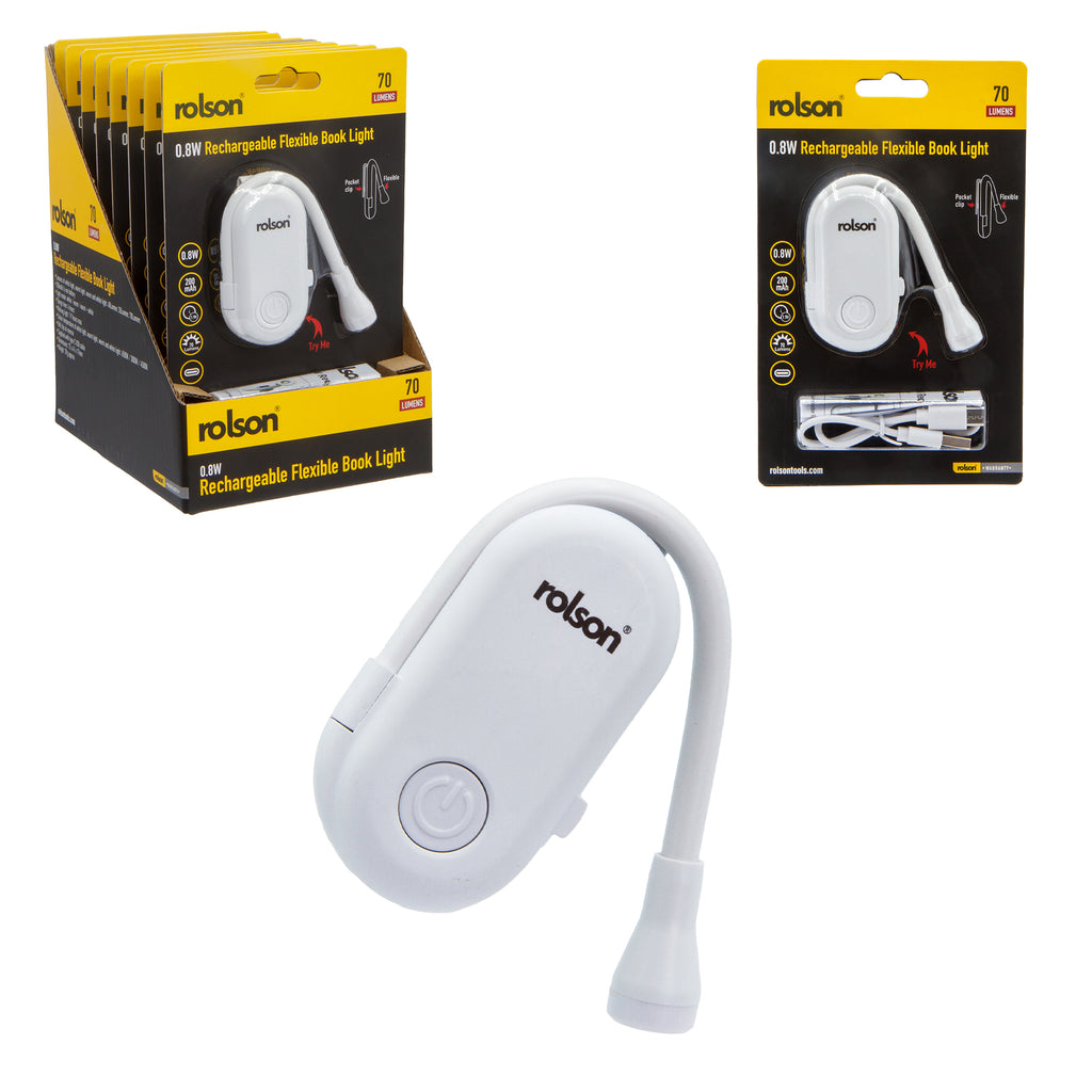 The 0.8W Rechargeable Flexible Book Light delivers reliable illumination for reading, studying, and detailed work. Powered by a 200mAh Li-ion battery, this compact light offers three versatile modes—white, warm white, and full power white—allowing you to adjust brightness and colour temperature to suit your environment and reduce eye strain. The flexible design positions light exactly where you need it, while the integrated pocket clip on the reverse provides convenient hands-free mounting on books, shelves, or clothing. With a 4-hour charge time via the included USB Type-C cable, you'll enjoy approximately 1.9 hours of continuous operation per charge. Ideal for bedside reading, travel, camping, or workspace tasks, this light combines portability with practical functionality for users seeking a dependable lighting solution.